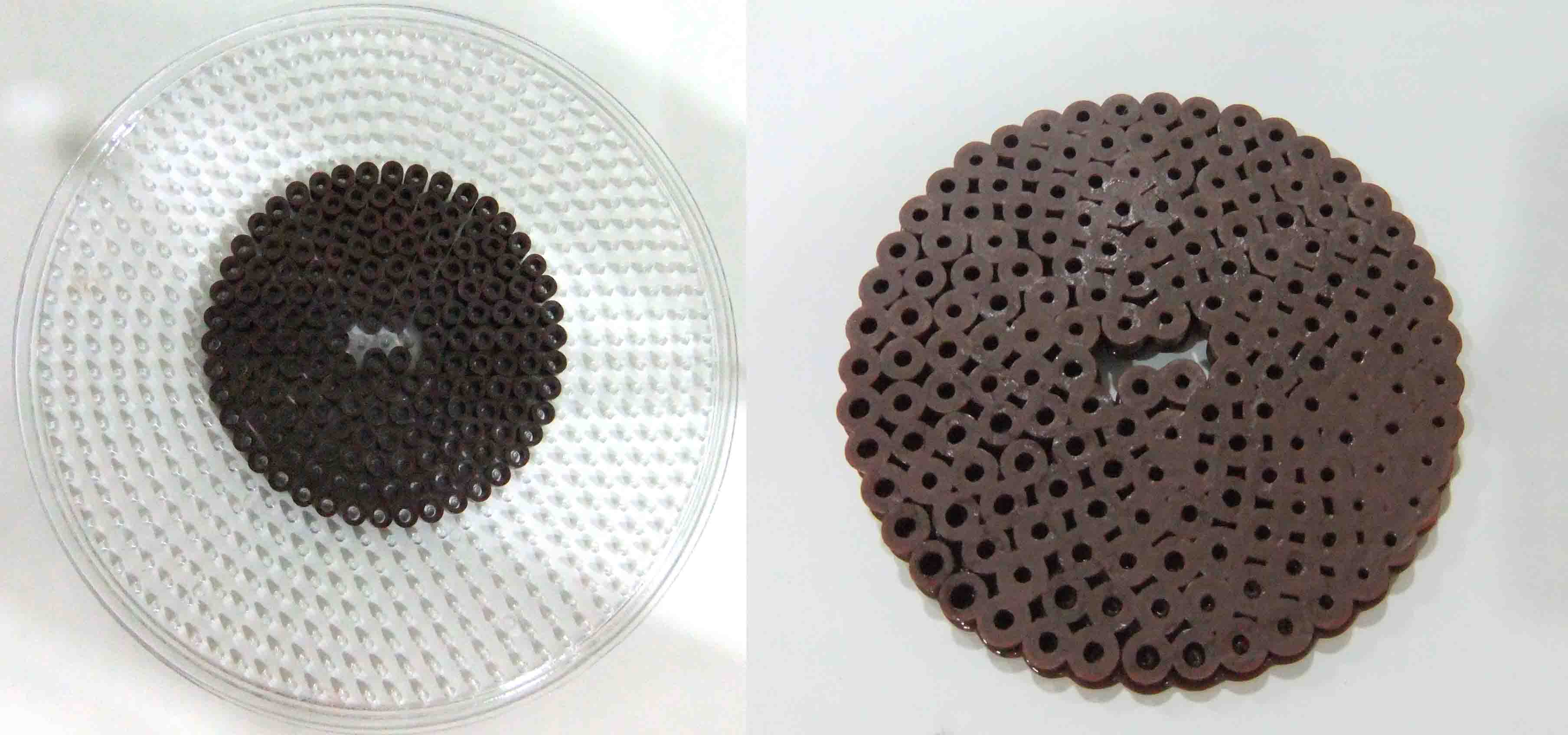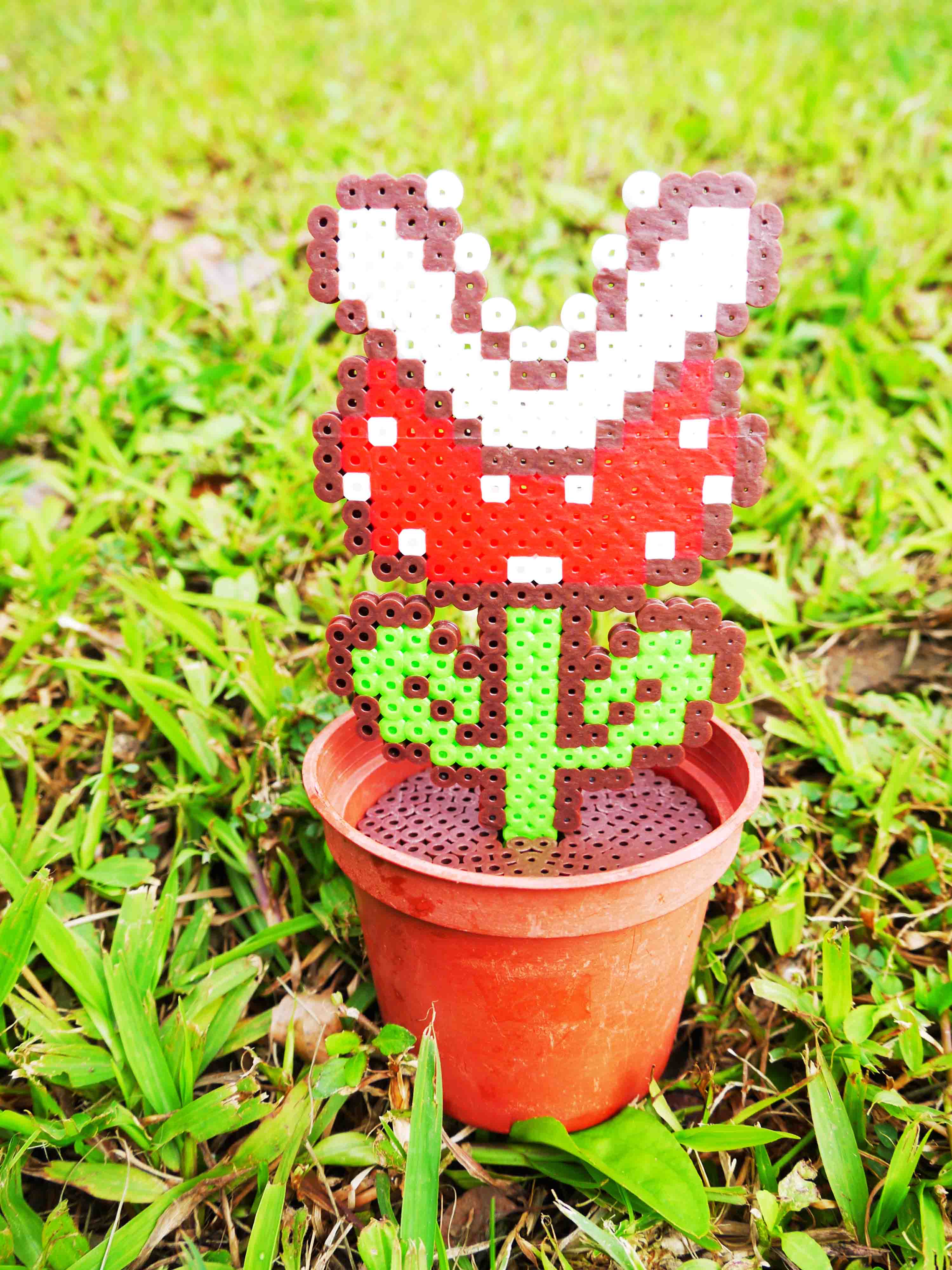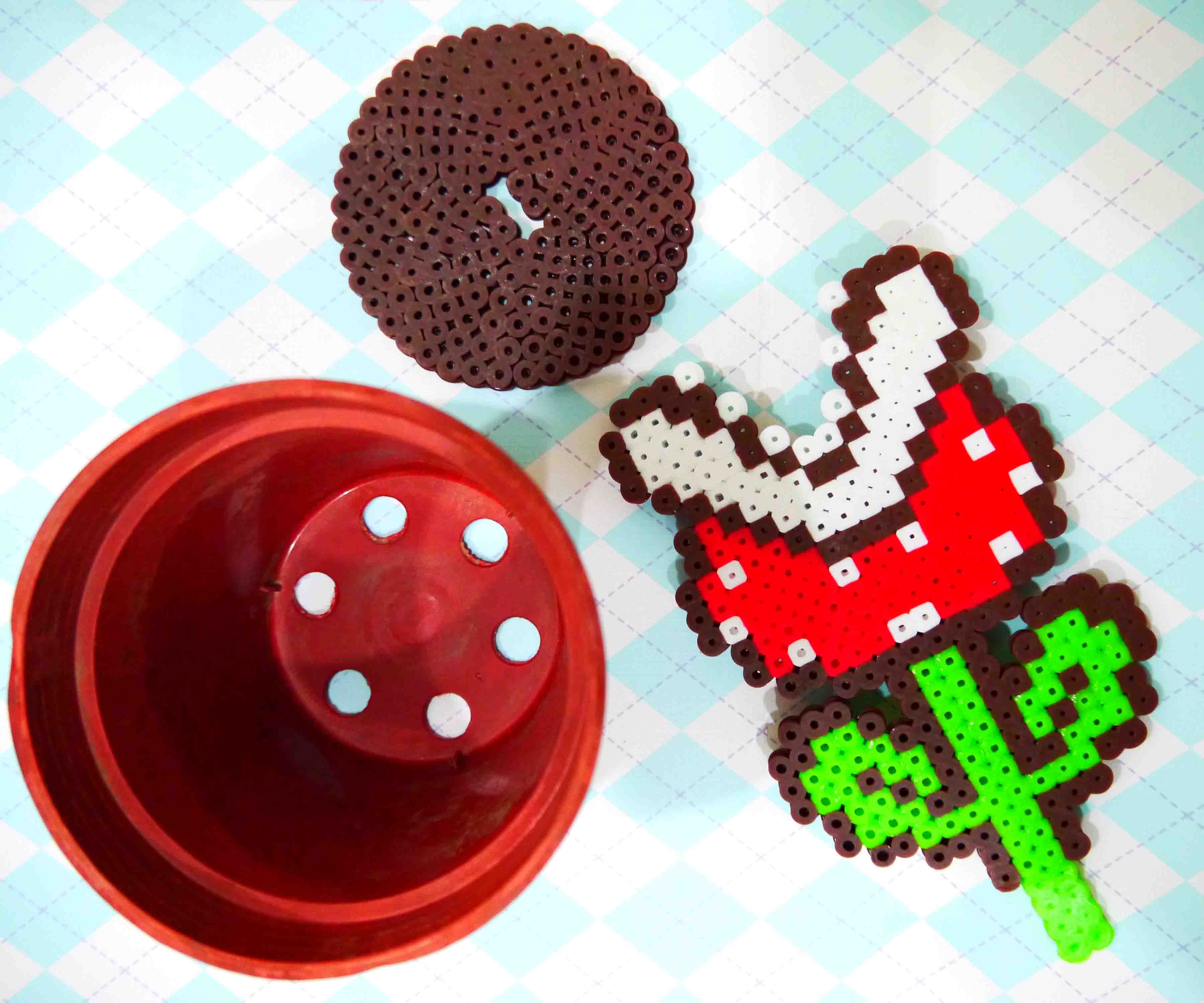 讓我們先拿兩顆深咖啡色(土色/接近花盆色)的拼豆