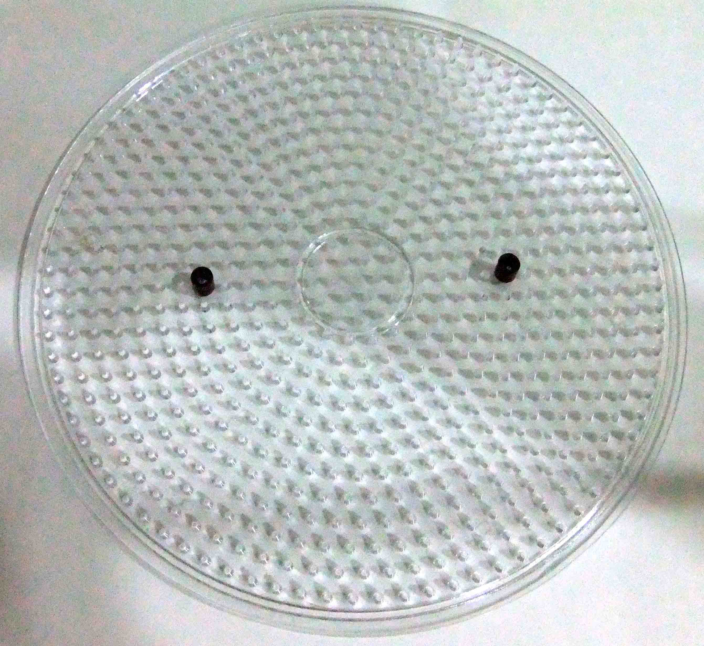 接著將把量到的尺寸除以2往模板圓中心擺上去