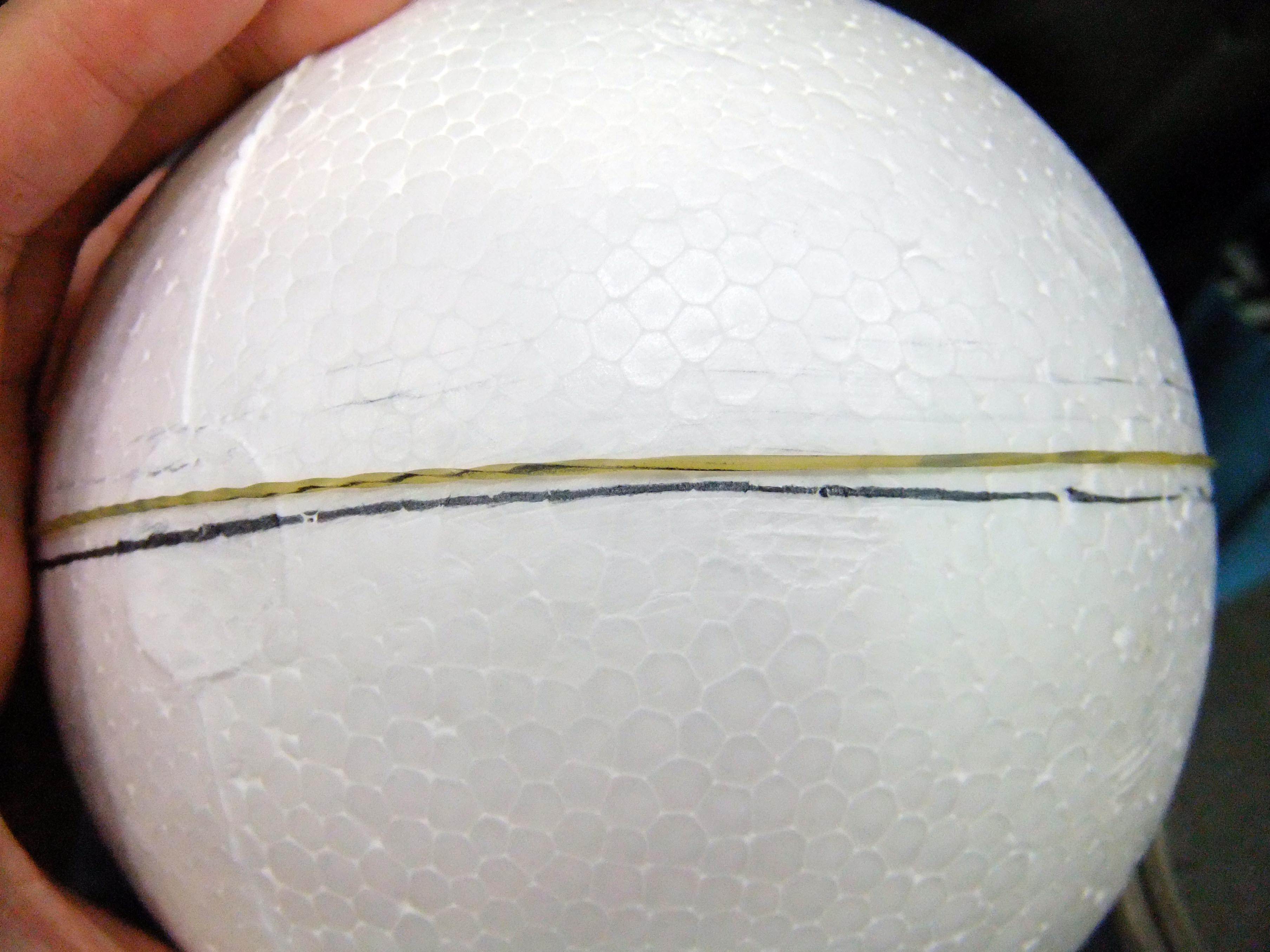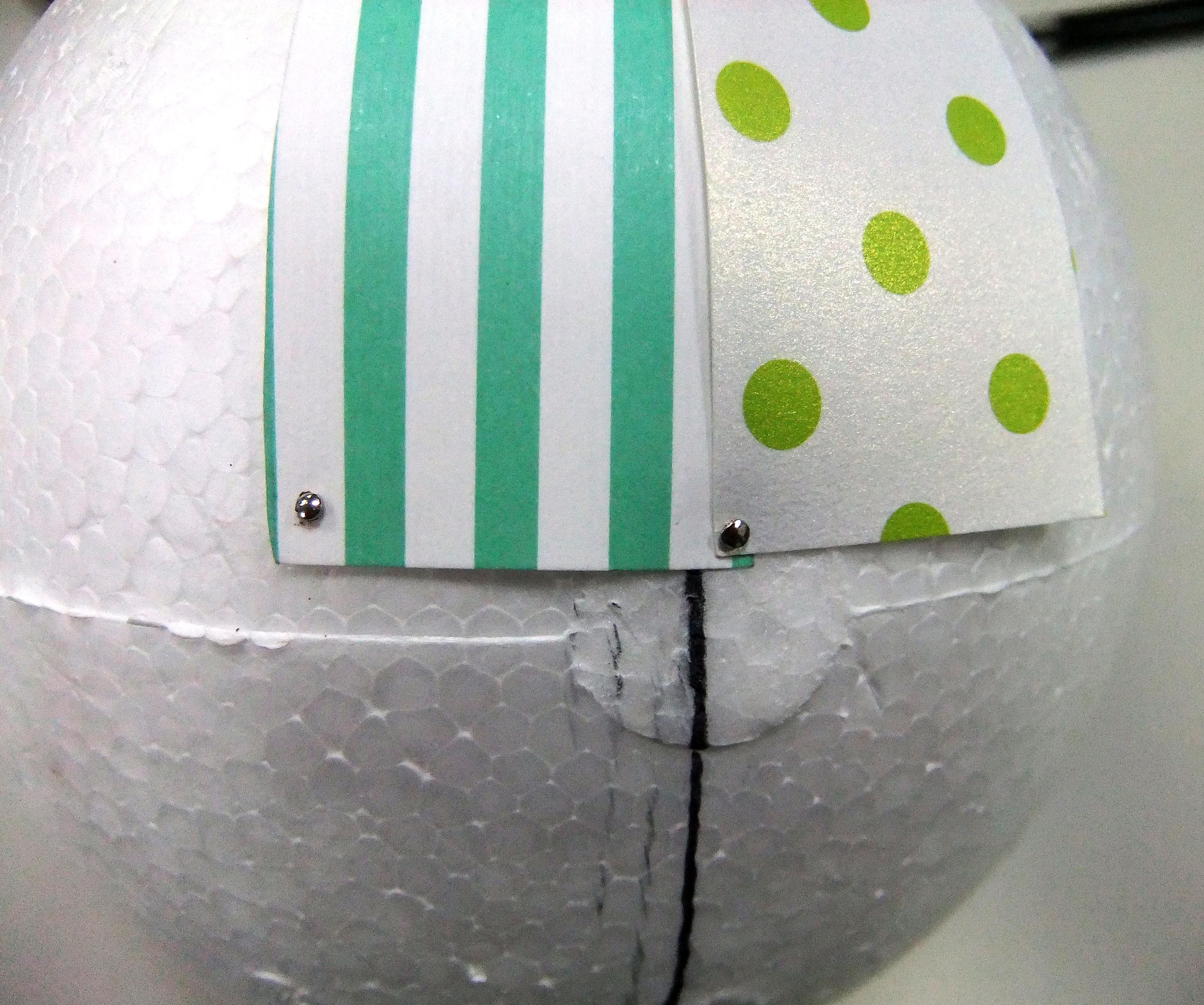 撕開一小角貼上保麗龍球,邊撕雙面膠邊進行整理貼合,避免一口氣撕掉的話,該注意的地方會太多