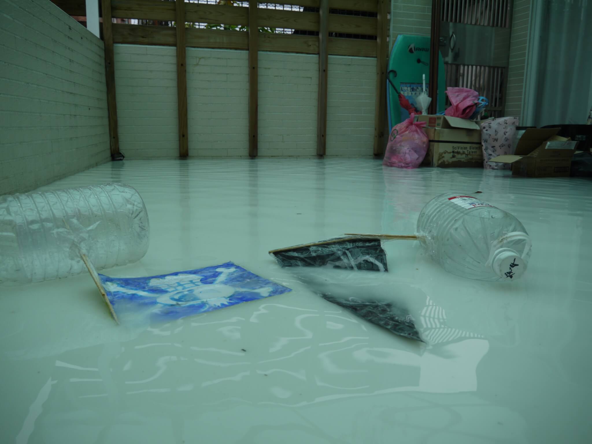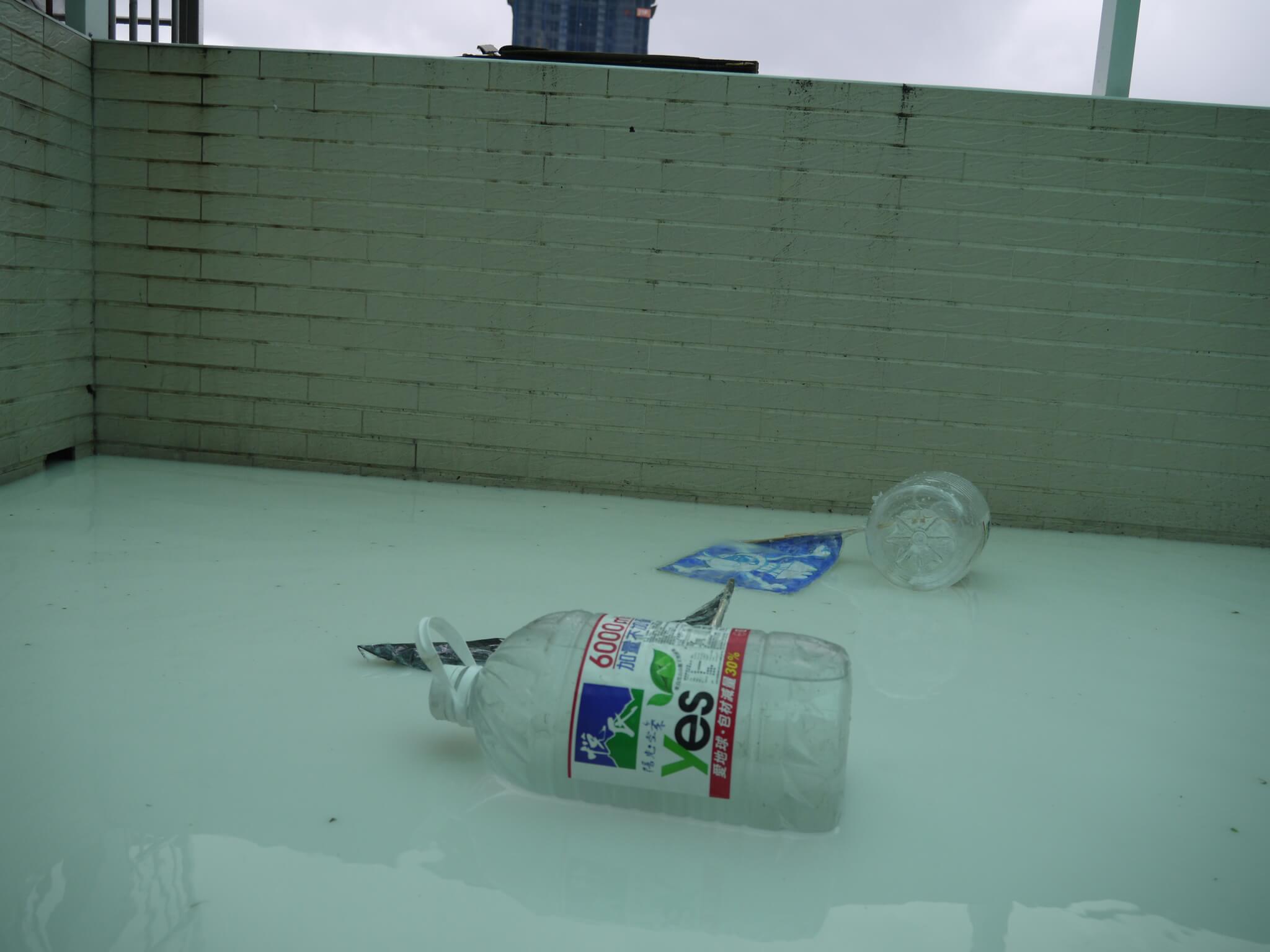 半夜就突然發現陽台積水,而且還不知被哪兒灑掉的油漆給染了一片白